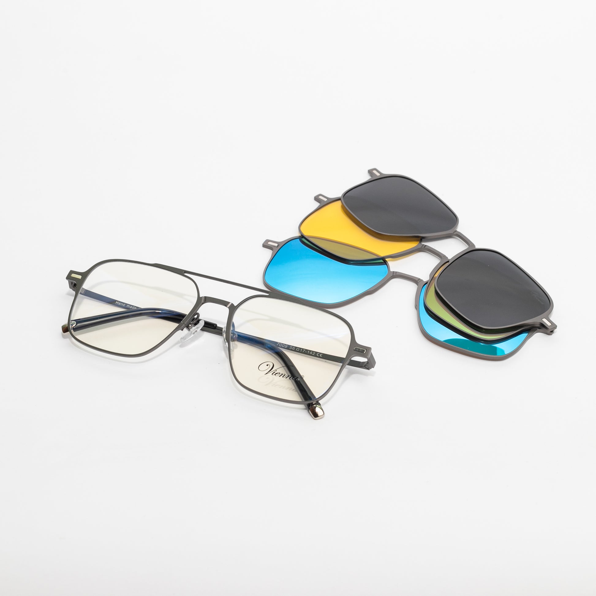 Versatile eyewear crafted from premium stainless steel that ensures durability and resists discoloration over time. Designed with a lightweight yet sturdy frame for maximum comfort and long-lasting wear. Comes with interchangeable polarized clip-on lenses that reduce glare, enhance clarity, and provide full UV protection — making it the perfect choice for both indoor and outdoor use.
